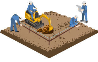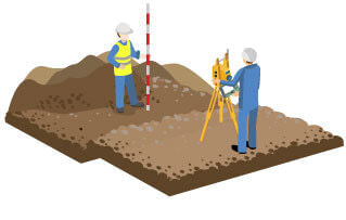 - 図面を読み、正確な位置を出して印をつけてから、重機を操縦し正確にできているか確認しながら施工